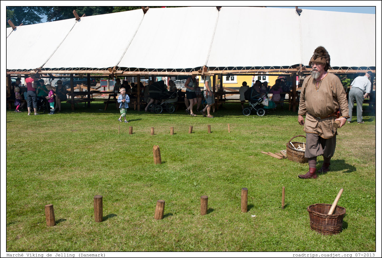 Ceux qui sont au centre de l'évènement, ça ne sont pas les commerçants mais bien des passionnées de tout age qui aiment revivre l'espace d'un week end comme vivaient leurs ancêtres. Acceuil cordial, tout le monde ou presque est capable de parler anglais. on se retrouve très vite initié à un jeu typique de l'époque, le Kubb. C’est un jeu de quilles en bois ressemblant mêlant précision et stratégie, le Kubb est parfois surnommé « jeu d’échecs viking ». Le terrain doit être délimité par les quatre piquets. Il mesure généralement 5 mètres de largeur et 8 mètres de longueur. Vous trouverez facilement les règles du jeu en français sur le Net et c'est un loisir très sympa !