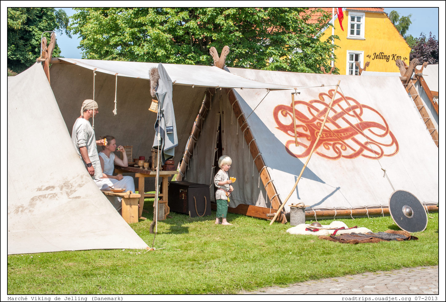 Une fois au Danemark, notre première étape se fait à Jelling où je souhaite me rendre à une grande fête viking. A première vue c'est un peu l'équivalent de nos fêtes médiévales assez courante l'été en France. Il faut pas longtemps pour remarquer que l'ambiance est très différente cependant. L'aspect commercial est très en retrait (personne n'oserait vendre ici des casque à cornes en plastique 'made in China') et l'aspect 'reconstitution historique' très clairement beaucoup plus mis en avant.