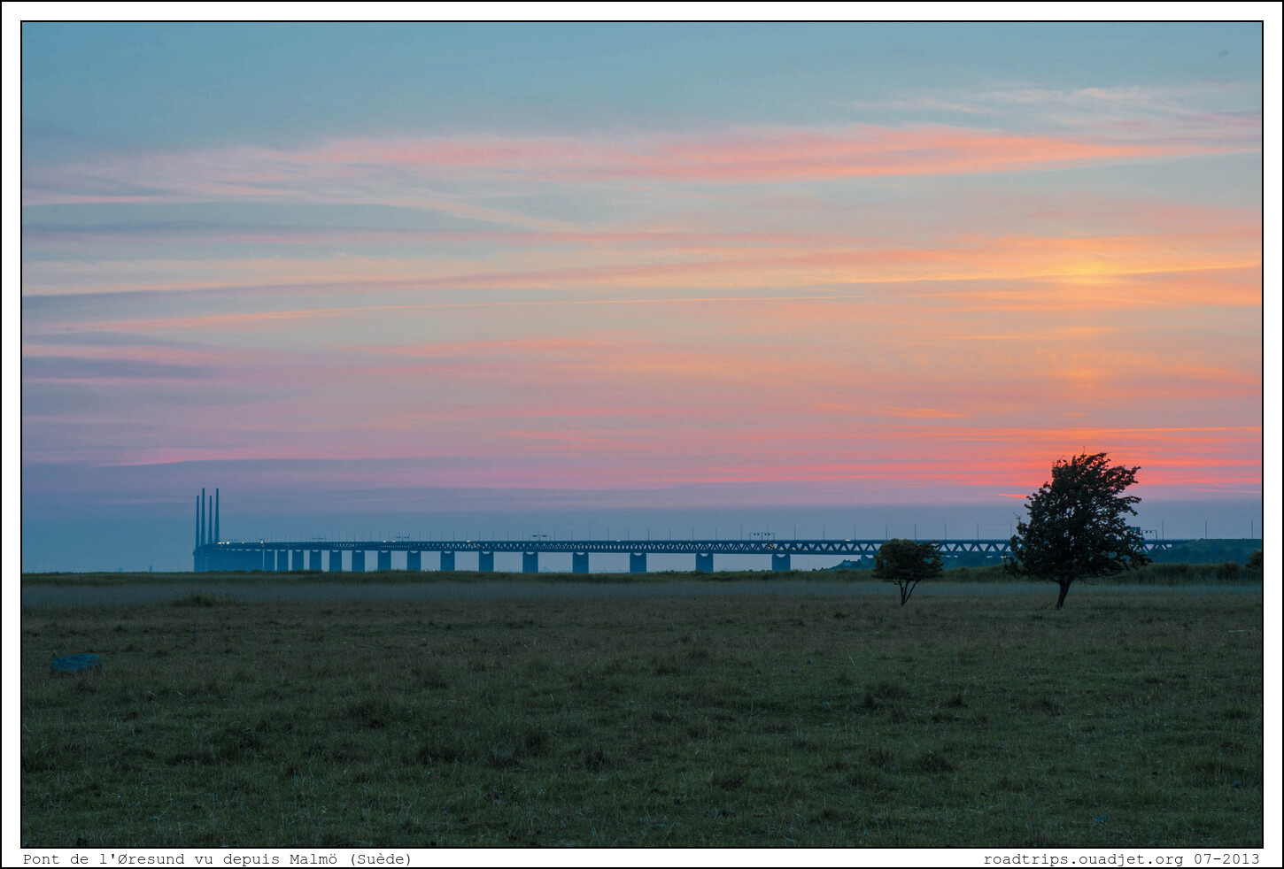 Après mangé nous quittons Copenhague et passons le grand Pont de l'Øresund qui nous conduit en Suède où nous trouvons facilement un point de bivouac avec une belle vue. Il est 22 heures et pourtant il fait toujours assez clair.