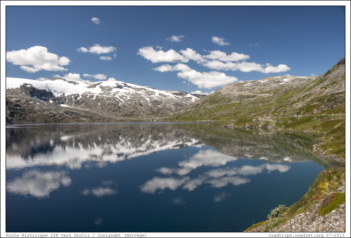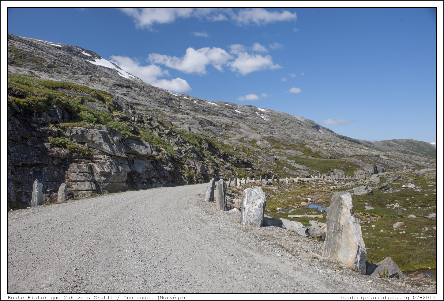 Après ce rapide contact avec la population touristique de masse (beurk !!!), on se dépèche de retrouver de grands espaces désert et pour ça la route 258 est toute indiquée. Vous n’en avez peut-être jamais entendu parler mais cette route est vraiment extraordinaire. Il s’agit d’une vieille route, doublée désormais par une route plus récente faite de tunnels, plus rapide mais moins intéressante. Vous pourrez l’emprunter entre Grotli et Stryn.