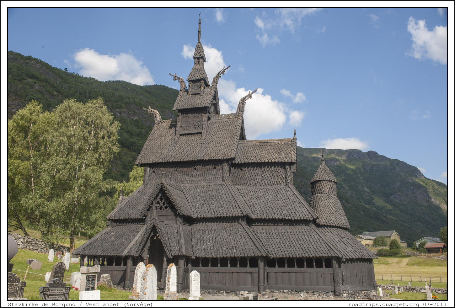 Nous arrivons dans une région de Norvège célèbre pour ses Stavkirke. Une stavkirke est une église médiévale en bois typique de la Norvège. On a répertorié environ 1 300 églises médiévales, dont 28 ont été sauvegardées en Norvège. On les appelle en français les « églises en bois debout » car des mâts ou poteaux sont utilisés pour soutenir le toit et l'élévation de la nef, mais aussi élever les murs. La plupart des églises en bois debout sont construites entre 1150 et 1350, mais beaucoup disparaissent vers 1700. La stavkirke de Borgund est considérée comme étant la mieux préservée des églises en bois debout subsistant en Norvège. Des datations des échantillons de bois par dendrochronologie indiquent que les arbres utilisés ont été abattus durant l'hiver 1180 - 1181, donc l'église fut vraisemblablement édifiée avant 1200.