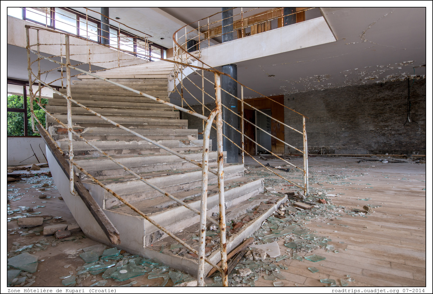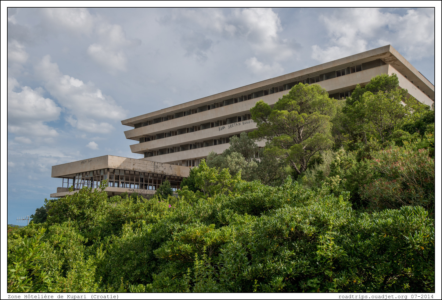 Nous passons la frontière pour rejoindre la côte croate vers Dubrovnik mais avec une halte dans la baie de Kupari. Kupari étant considérée comme une des plus belle baie de la riviera de Dubrovnik, dans les années 60, le gouvernement de Tito décide de lancer la construction d’un vaste complexe hôtelier de luxe pour le gouvernement et l’élite militaire. Six hôtels seront construits sur la baie ainsi que 2 villas situées à l’écart sur la pointe, réservés aux hauts placés du gouvernement.