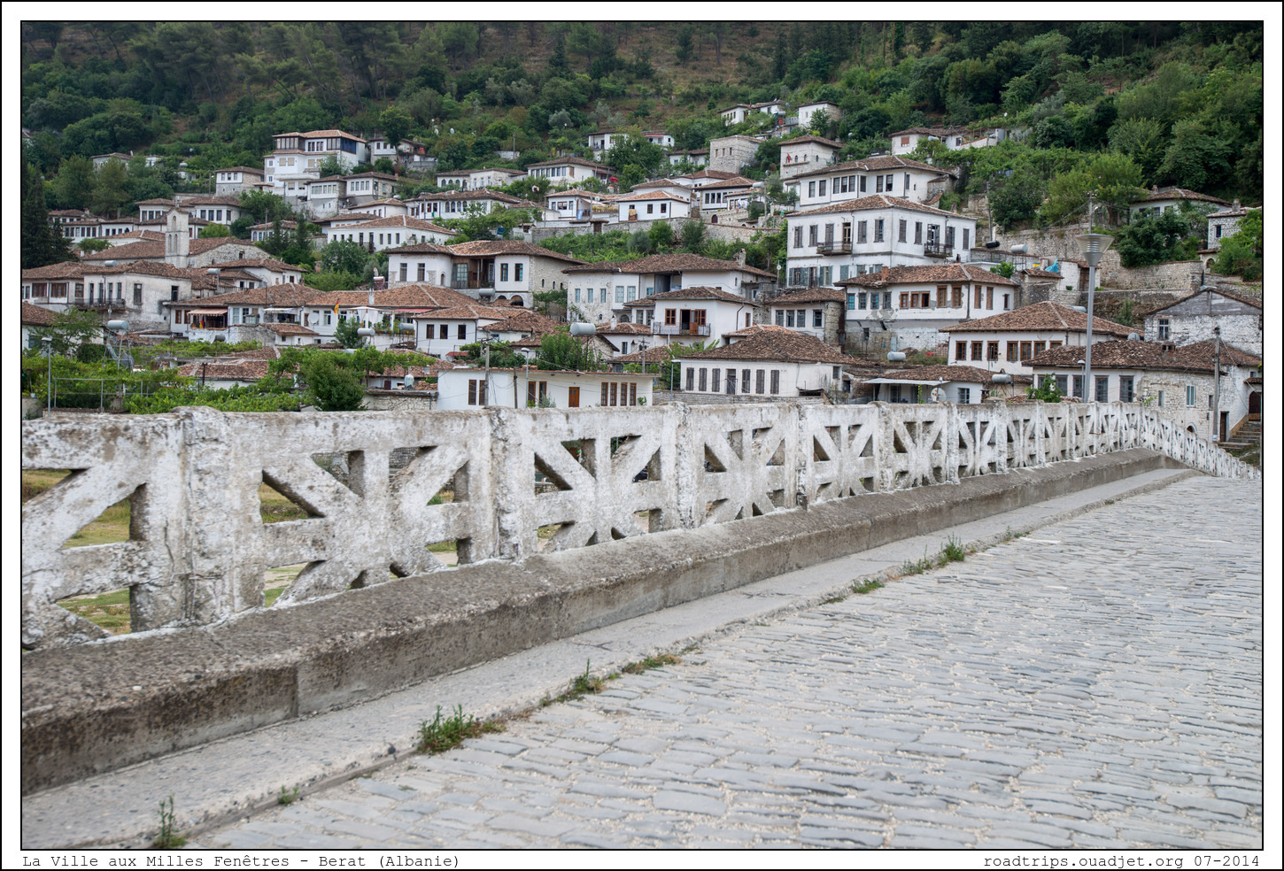 Il est déjà temps de quitter Tirana car on a encore pas mal de route. Mais cette première approche des Balkans nous a beaucoup plu et on se promet d'y revenir plus longuemment à l'occasion. Nous nous rendons à Berat. La ville de Berat est situé à environ 50 km de la côte de la mer Adriatique dans le Centre Sud de l'Albanie. Fondée il y a plus de 2 500 ans, Berat est connue sous le nom de la « ville aux mille fenêtres ». Durant la période médiévale, la ville devient une partie de la frontière instable de l'Empire byzantin après la chute de l'Empire romain d' Occident. C'est une période où la ville passe de mains en mains, entre les Bulgares, les Byzantins, les Napolitains, les Albanais ou les Ottomans. La juxtaposition des lieux de prières catholiques, orthodoxes et musulmans témoigne ici de la capacité à cohabiter des différentes communautés.