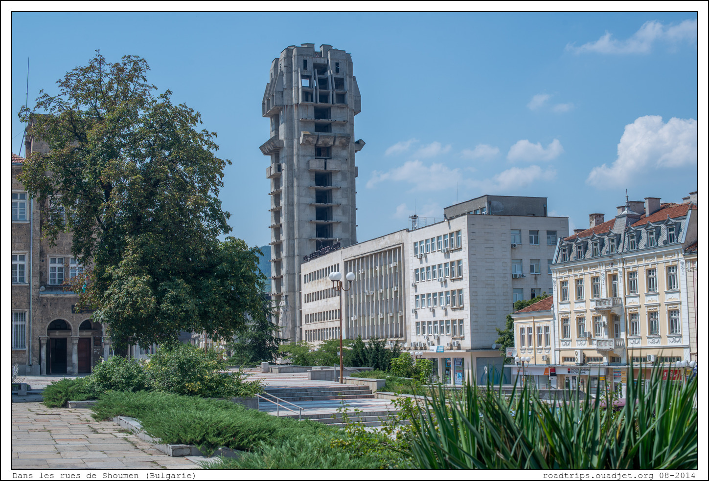 La cité était déjà importante au Moyen Âge comme en témoigne sa forteresse, mais ce sont les Turcs qui ont intensifié le développement de Choumla, nom qu'ils avaient donné à la ville. Rebaptisée Choumen par la suite, l'urbanisation s'y est poursuivie dans plusieurs styles, dont celui de la période communiste qui, pour une fois, n'a pas été fatal en structurant la ville de belle manière. La tour qu'on peut voir sur la photo était en construction au moment de la chute du régime communiste (10 nov 1989). Elle est toujours en vente depuis...