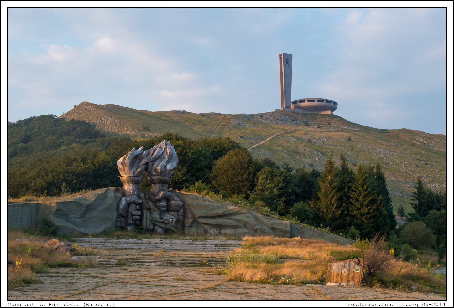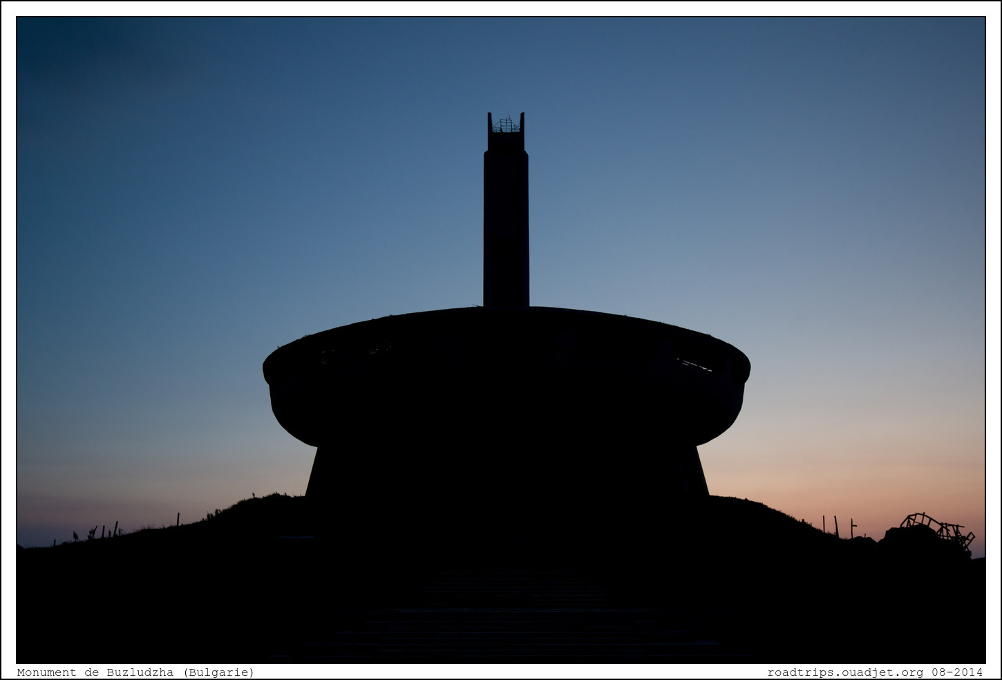 Nous atteignons en fin de journée noutre lieu de bivouac qui est un des point clé du voyage, le site de Buzludzha. Le monument de buzludzha ou maison du Parti communiste bulgare est une ancienne salle de congrès, aujourd'hui abandonnée, construite sous le régime communiste sur le sommet de la buzludzha à 1 441 m d’altitude.