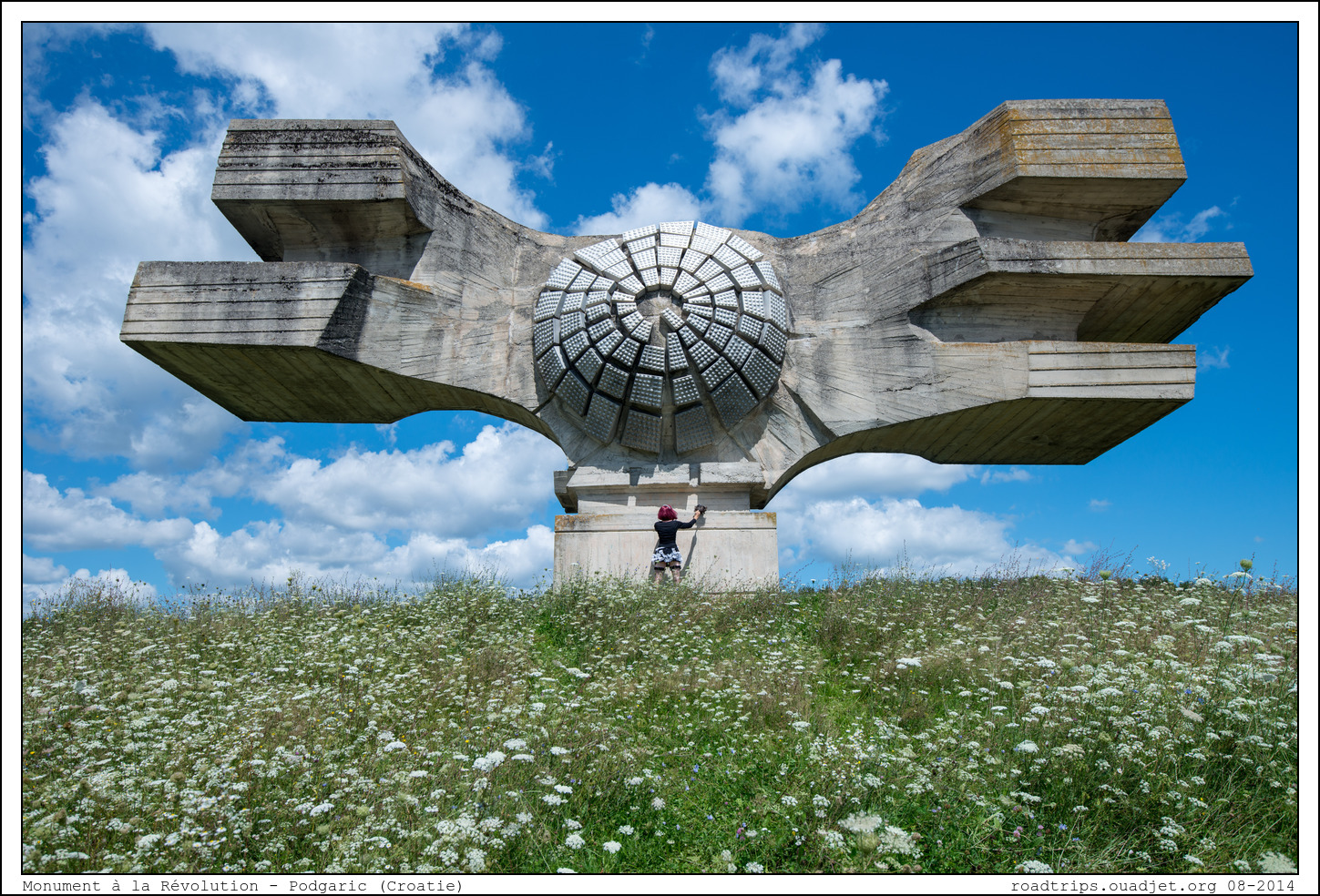 C'est mon Spomenik préféré ! «Spomenik» est le terme qui désigne les monuments érigés à la gloire de la révolution yougoslave durant l'ère titiste, sur l'ensemble de l'ex-territoire fédéral. On y trouve cependant une concentration plus importante en Croatie, Bosnie et Serbie. La plupart de ces monuments, à l'architecture brutaliste, célébraient la guerre patriotique des troupes yougoslaves contre l'envahisseur nazi. Ils attisent aujourd'hui un intérêt croissant. Les cinq ailettes du Spomenik (trois sur la partie gauche et deux sur la partie droite) symbolisent les cinq nationalités constitutives de l'ex-Yougoslavie: slovène, croate, serbe, monténégrine et macédonienne.
