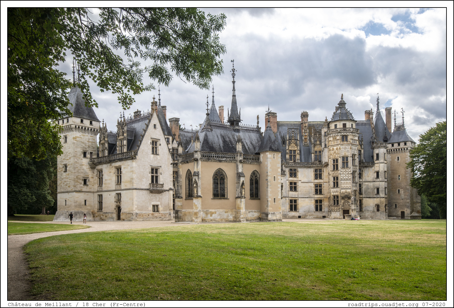 On termine la journée au château de Meillant, un ancien château fort reconstruit en partie après la guerre de Cent ans dans un style gothique flamboyant évoluant jusqu'au style Louis XII. La visite est intéressante car ce château n'a jamais été attaqué et a parfaitement passé l'époque trouble de la révolution (là encore, le chatelain de l'époque avait de bon rapport avec ses gens). On voit distinctement les différents ajouts qui témoignent chacun d'une période architecturale différente.
