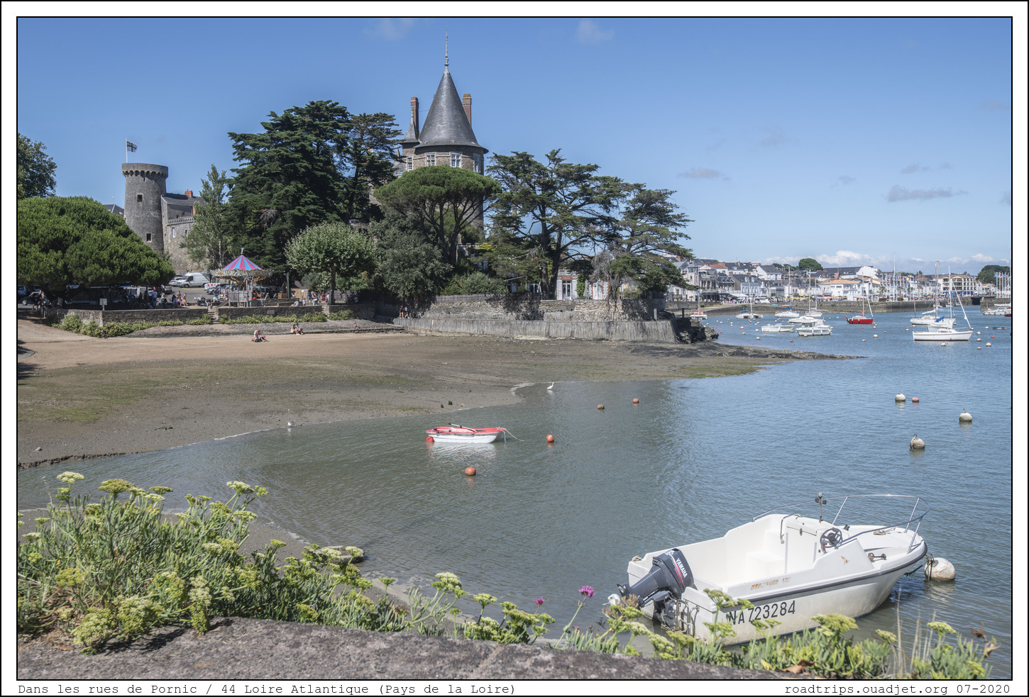 En milieu d'après midi, nous atteignon l'ocean ! Nous sommes à Pornic et on voit bien aux toits en ardoise qu'on a radicalement changé de région. Aujourd'hui située dans le département de la Loire-Atlantique, en région Pays de la Loire, la commune de Pornic fait partie de la Bretagne historique, dans le pays traditionnel du pays de Retz.