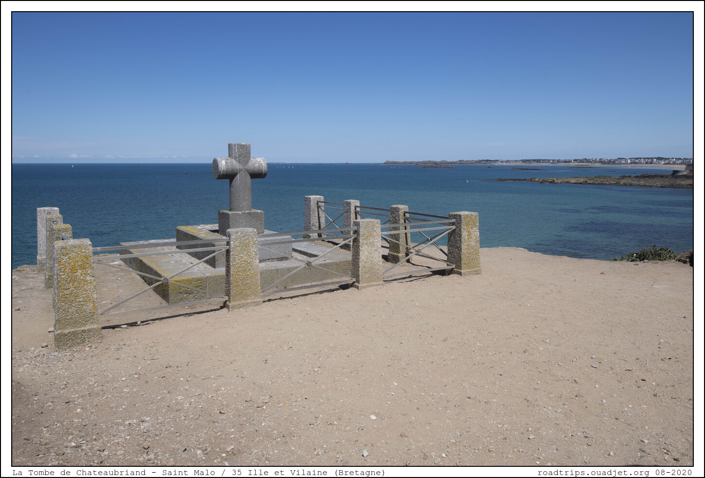 Le tombeau de Chateaubriand, célèbre écrivain français né à Saint-Malo le 4 septembre 1768 et mort à Paris le 4 juillet 1848 est situé selon son vœu sur l'îlot du Grand Bé (presqu’île accessible à marée basse). il souhaita aussi que sa tombe ne comporte aucune inscription.