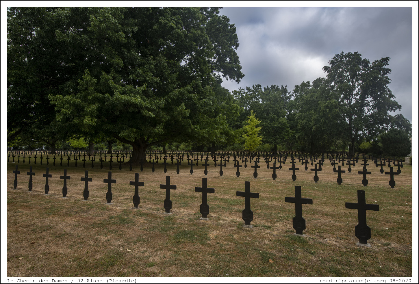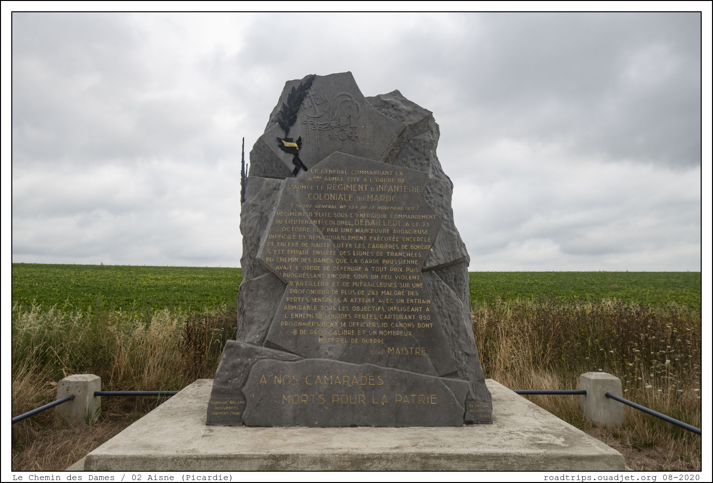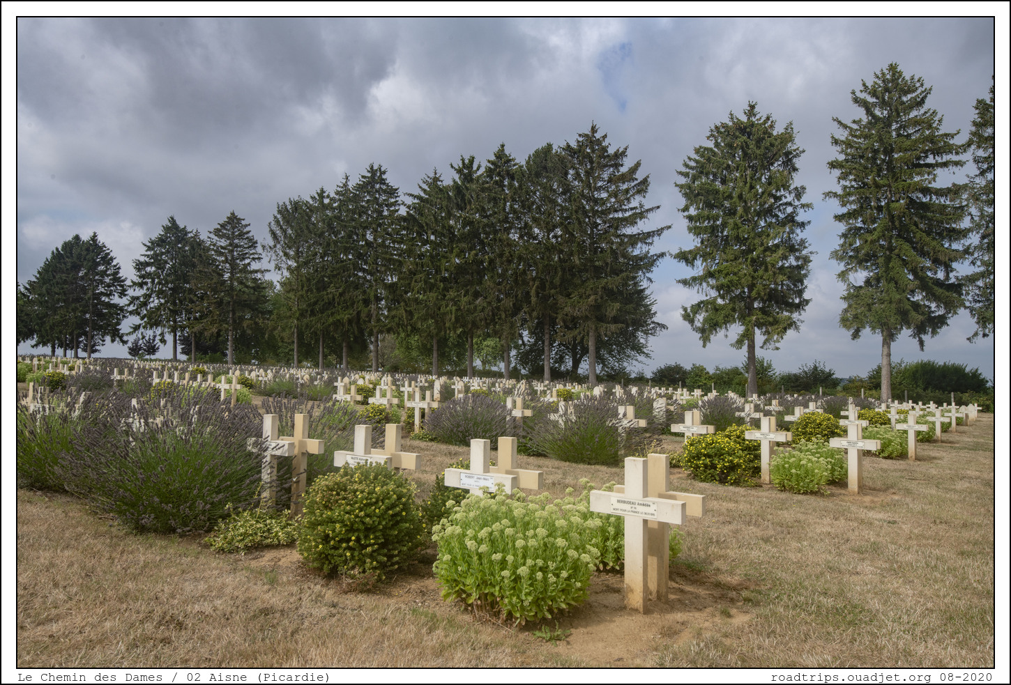 Le Chemin des Dames est un plateau calcaire, orienté est-ouest. Ce plateau est un bel observatoire, tant vers le nord et la plaine située à l'est entre Reims et Laon, que celle située au sud depuis Soissons. Les Allemands sont présents sur le plateau depuis septembre 1914. Ils ont eu le temps de transformer cet observatoire en forteresse en aménageant les carrières souterraines, en creusant des souterrains permettant de relier l'arrière aux premières lignes, en édifiant et camouflant de nombreux nids de mitrailleuses. Depuis cette date, c'est un secteur relativement tranquille qui n'a pas fait l'objet, depuis la fin 1915, de grosses offensives. Les Allemands tiennent la ligne de crête et les Français sont établis sur les pentes.