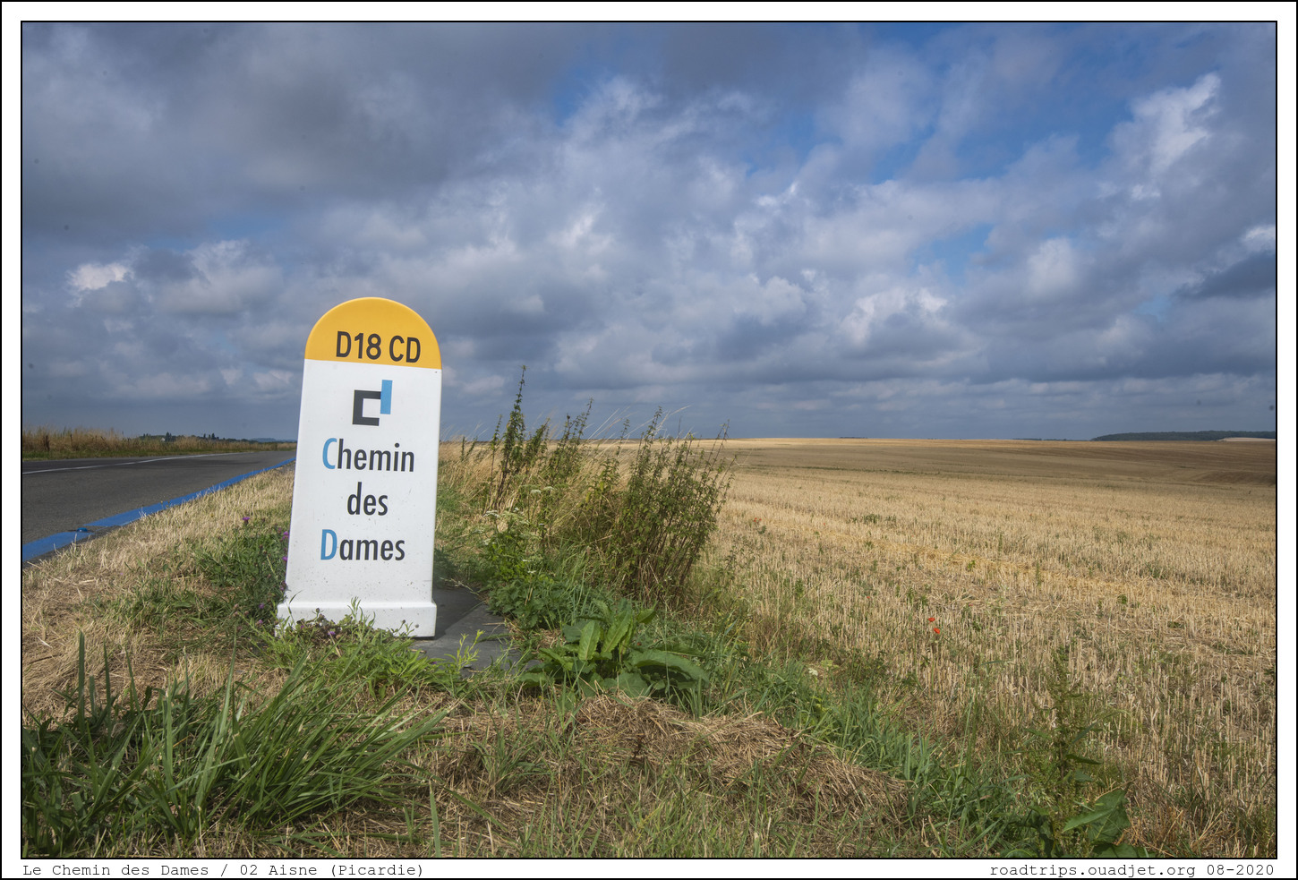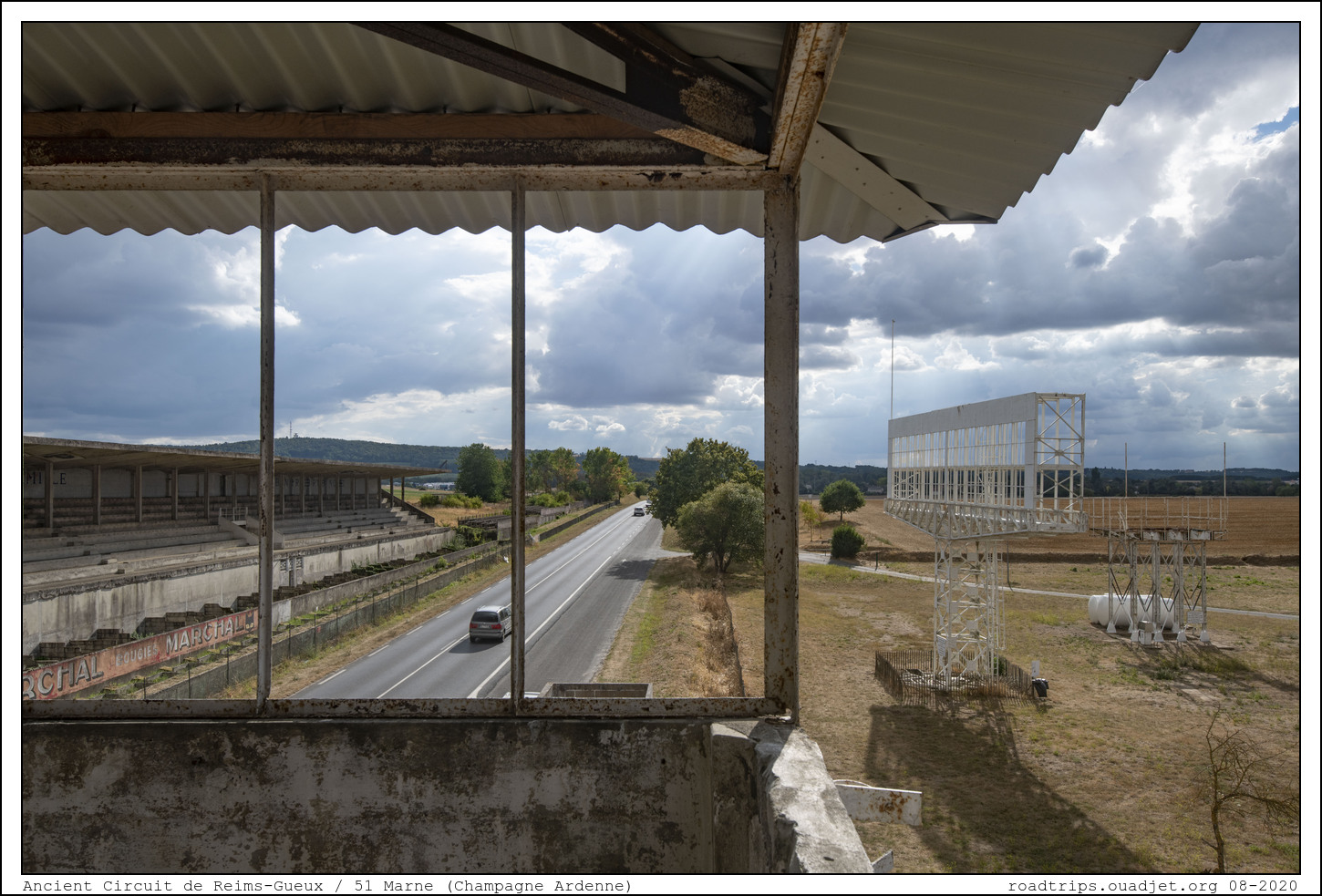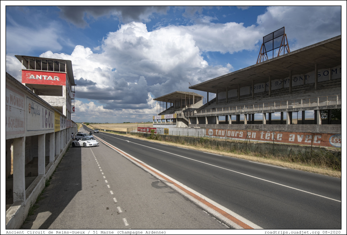 Avant de quitter ce coin, je voulais aller à l'ancien circuit situé à environ 5 km à l'ouest de Reims entre les villages de Thillois et de Gueux. Le circuit fut utilisé pour la première fois en 1926 pour le deuxième Grand Prix de la Marne organisé par l'Automobile Club de Champagne. Treize ans après, en 1938, l'Automobile Club de France l'utilisera pour le Grand Prix de France et la première course de Formule 1 officielle sera courue ici en 1950. Le circuit était constitué de trois longues lignes droites de routes (RN 31, CD 26 et CD 27) et de trois virages (Gueux, La Garenne et La Bonne Rencontre).